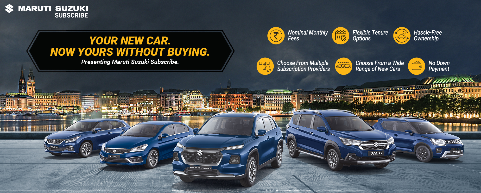 Located in Hoshiarpur , Hoshiarpur Automobile offers a plethora of options of Nexa cars for Maruti Suzuki Subscribe. You can choose your desired Maruti Suzuki car and drive it home at nominal monthly fees for a variety of flexible tenure periods. Whether you prefer Hatchback, Sedan, SUV or even MUV you are sure to find it at Hoshiarpur Automobile, Pipanwala with an easy Maruti Suzuki Subscribe plan.